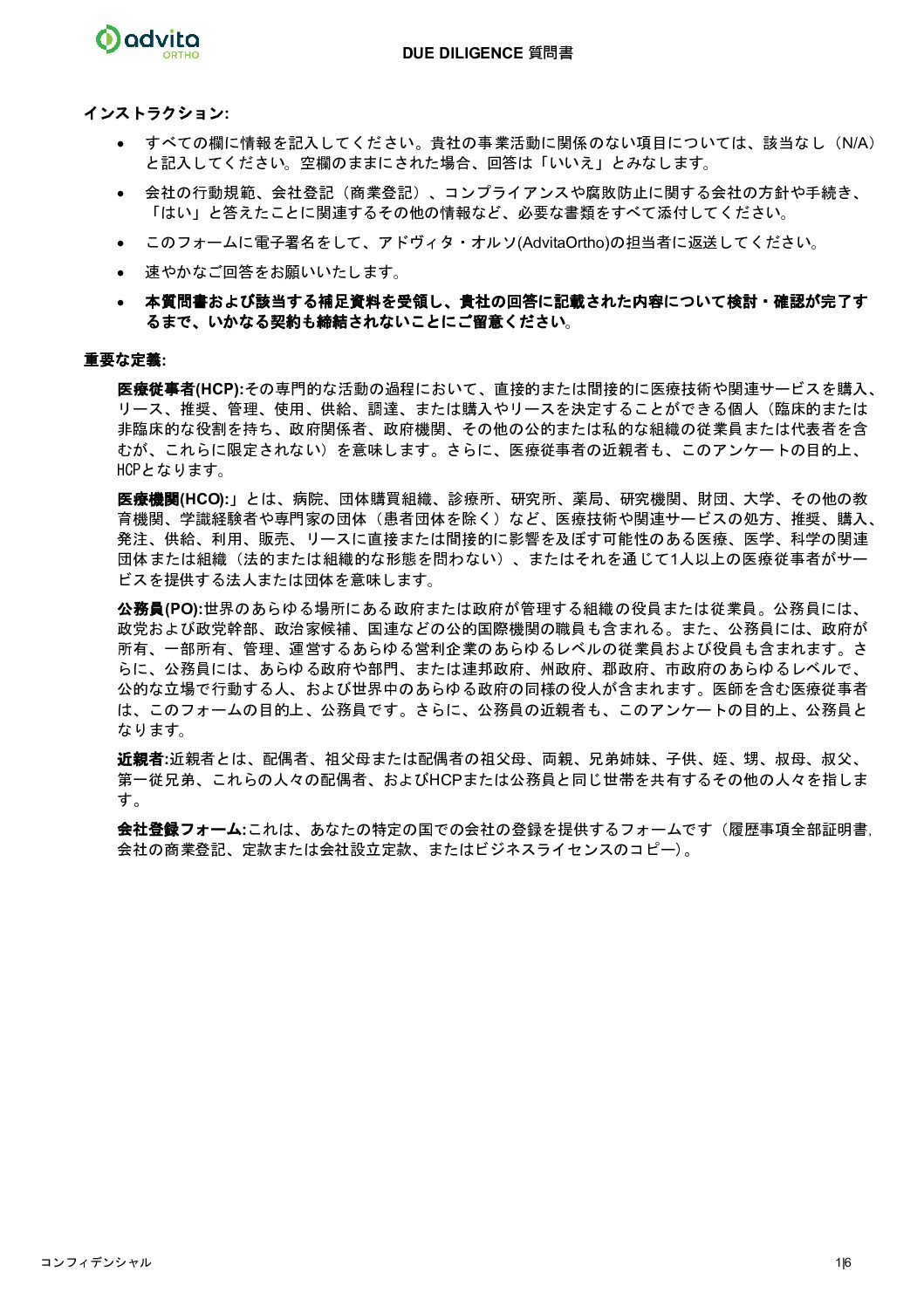 Due Diligence Questionnaire – APAC JP